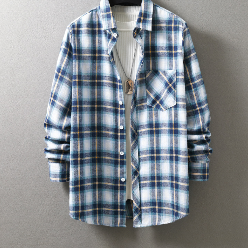 Wyróżnij się dzięki tej męskiej koszuli w kratę, łączącej dyskretną finezję z niezaprzeczalną wygodą. Idealna, aby wzbogacić Twoją jesienno-zimową garderobę, naturalnie wpasuje się zarówno w stylizacje casualowe, jak i bardziej eleganckie.