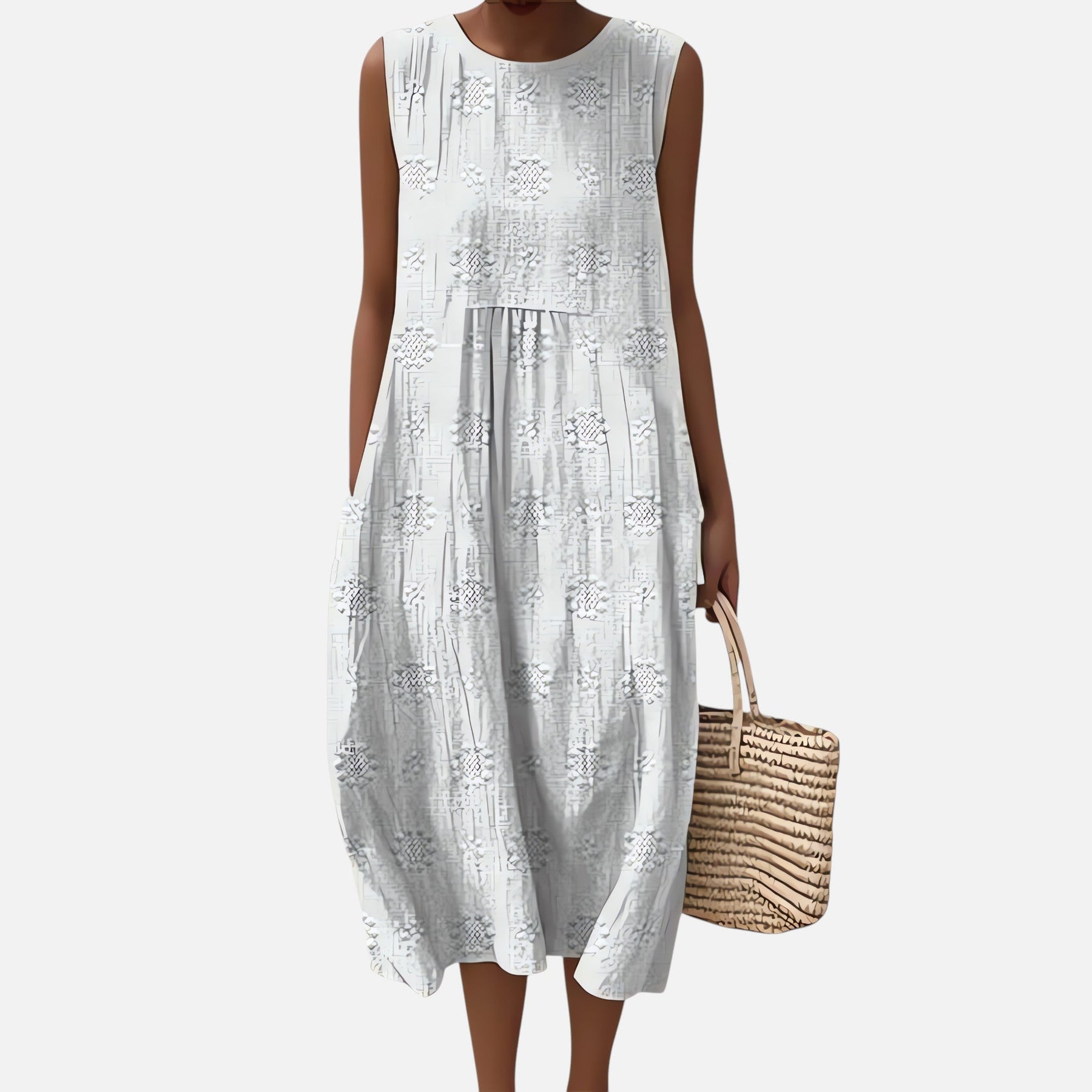 Dodaj odrobinę bohemy do swojej garderoby dzięki naszej sukience midi bez rękawów. Zaprojektowana, aby połączyć komfort i styl, jest idealna na wszystkie letnie dni i specjalne okazje.