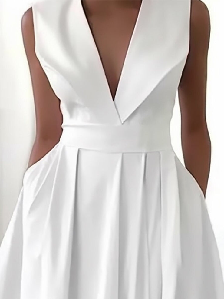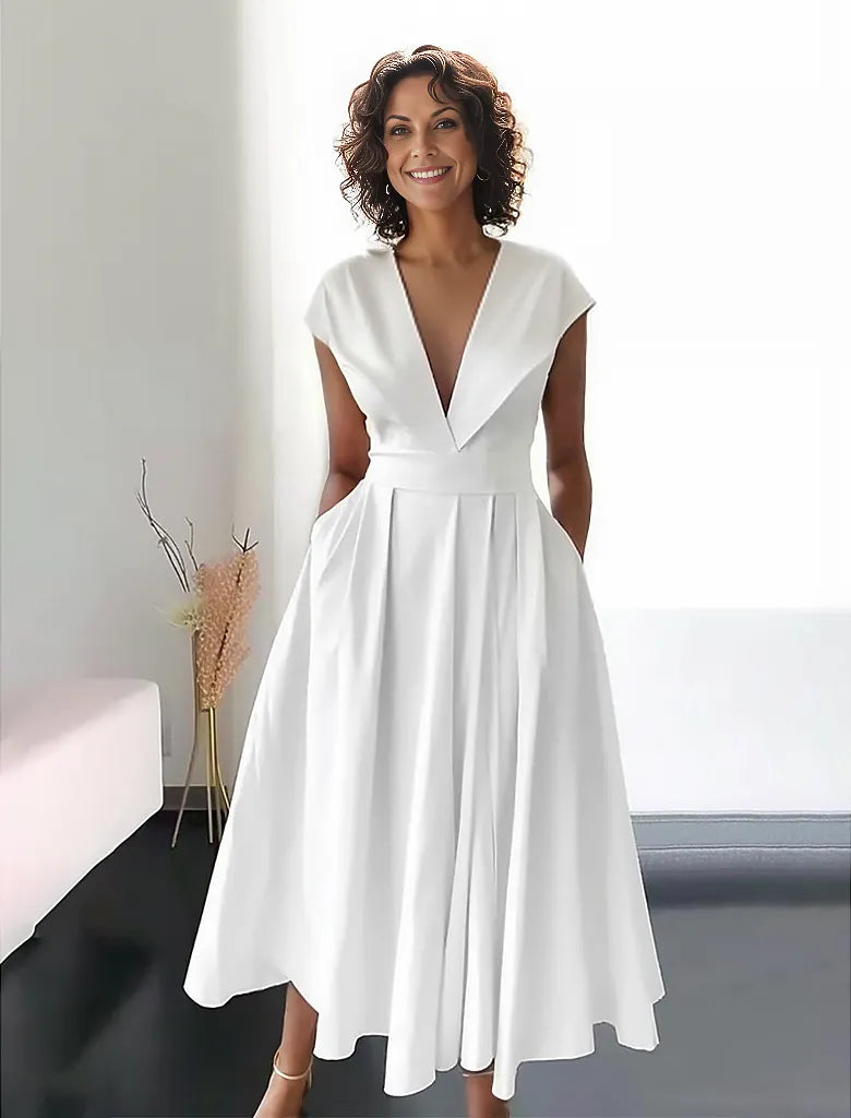 Długa Biała Suknia Damska Beatrice - Elegancka Sukienka z Dekoltem V