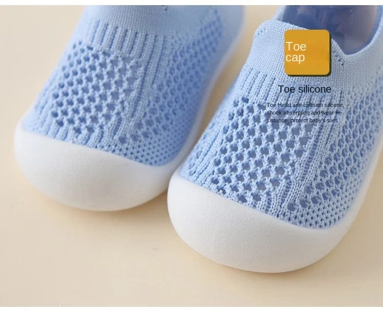 Oddychająca siateczka pozwala małym stópkom Twojego dziecka pozostać świeżymi, podczas gdy elastyczna podeszwa dopasowuje się do każdego ruchu. Te buciki są idealne na pierwsze kroki dziecka, zapewniając uczucie boso, jednocześnie chroniąc przed twardymi powierzchniami.